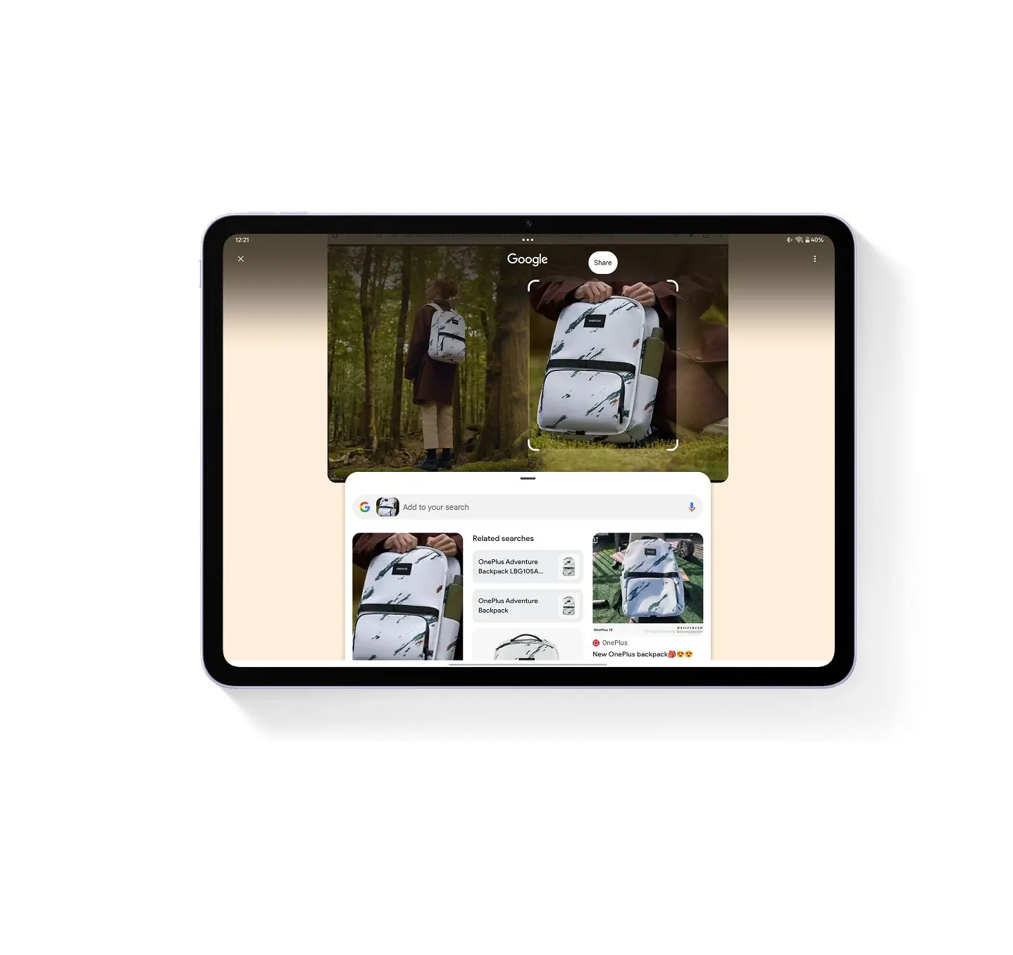 Обведите и коснитесь изображения, видео или текста - чтобы найти объект, без переключения между приложениями.